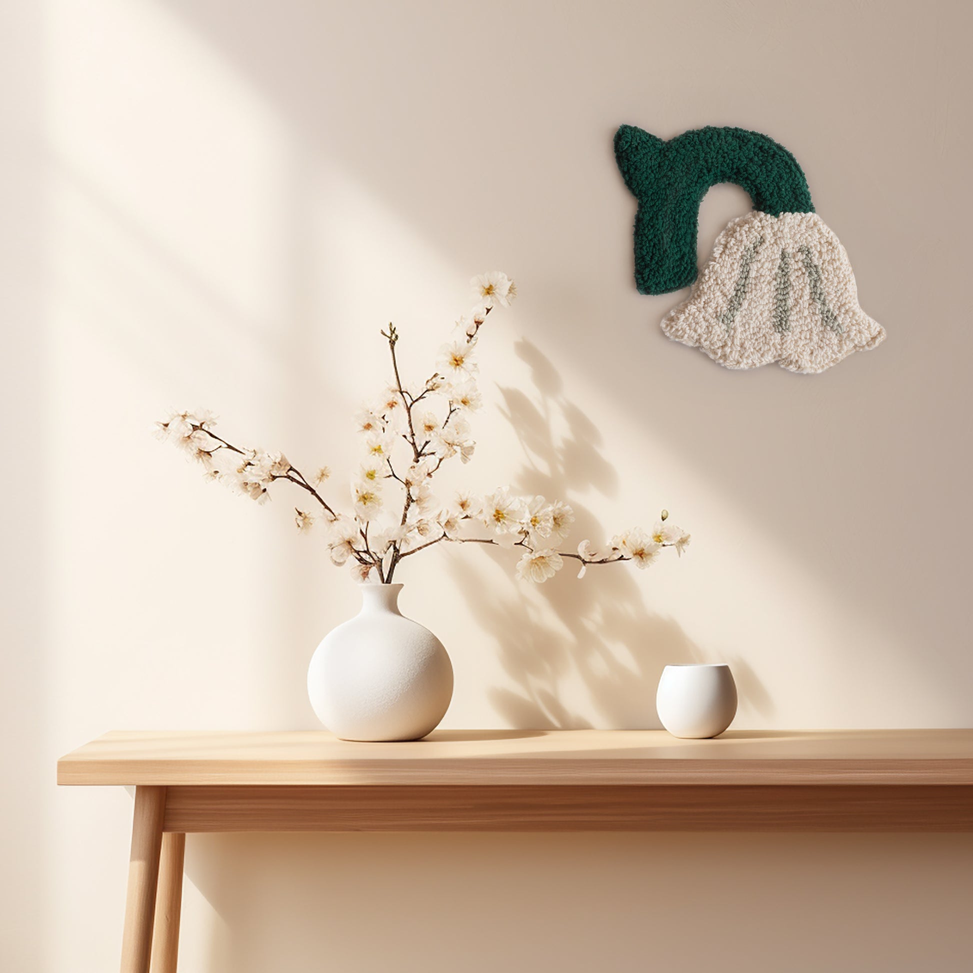 Introducing our exquisite handmade tufted wall hanging from the enchanting 'Seasonal Gardens' collection. This stunning piece of art beautifully captures the essence of the four seasons, inviting nature's transformative beauty into your living space.