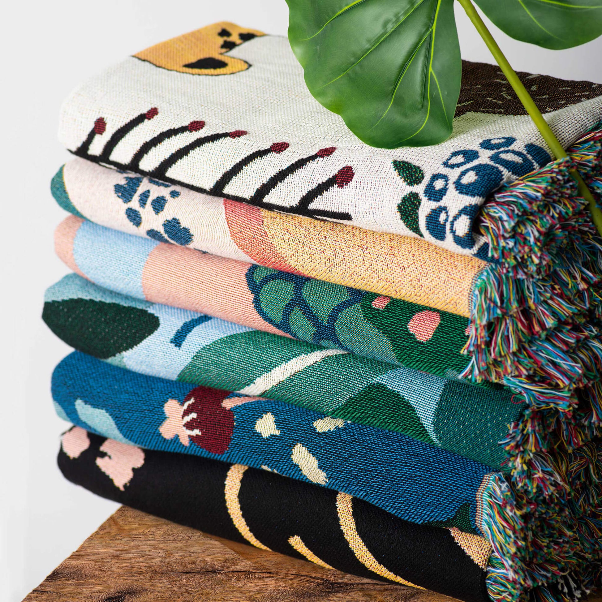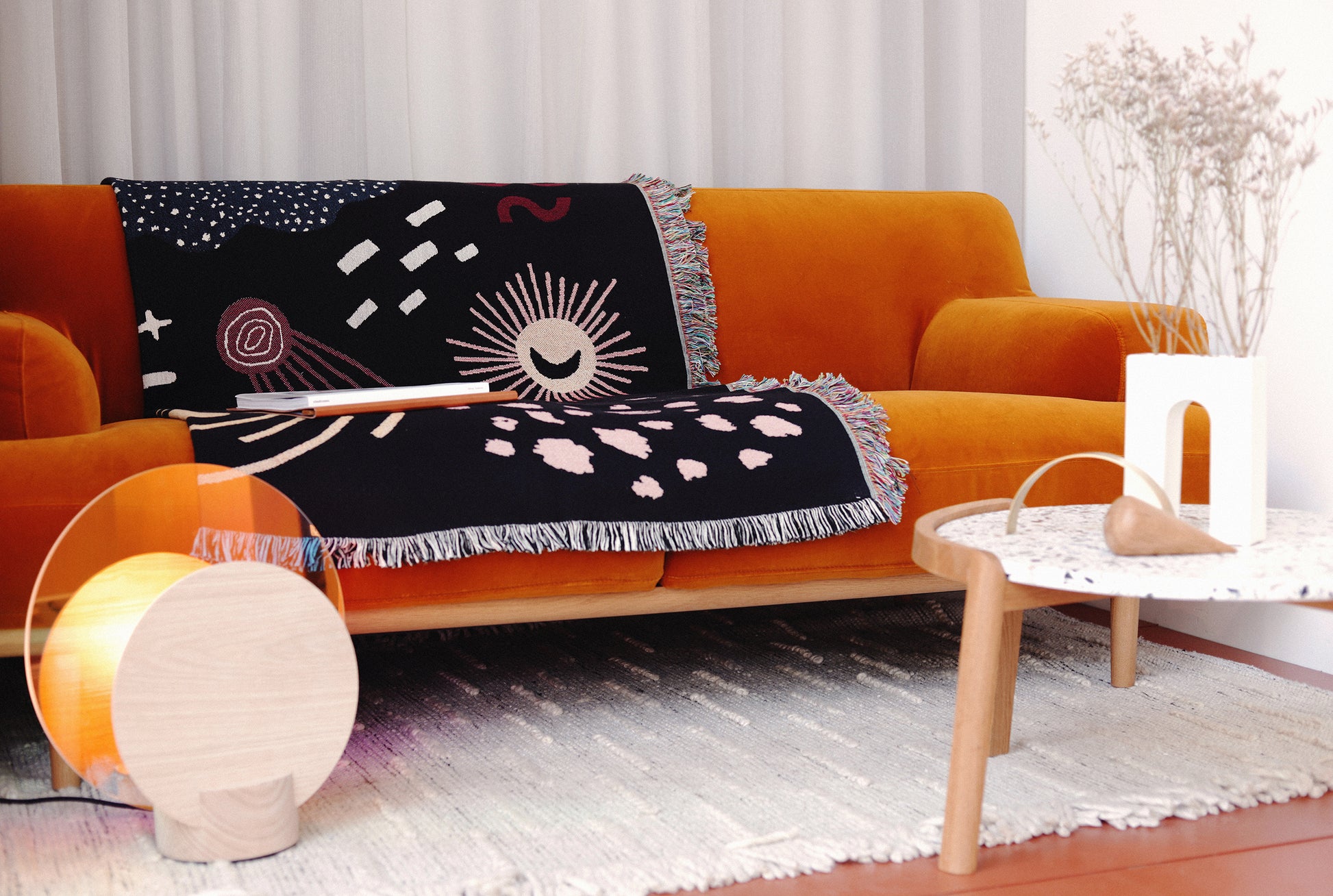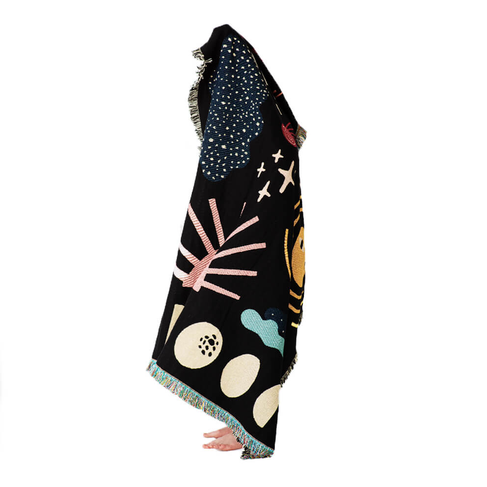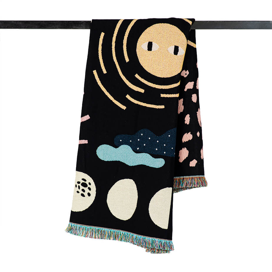Your unique way to celebrate a couch or a bed, or dress your home with genuine wall tapestry. This blanket is part of the new collection GENESIS - an illustrated interpretation of the genesis 6 days creation story, bringing bits of light and color into the world of textile. This blanket represents the first day - 'Let there be light'.