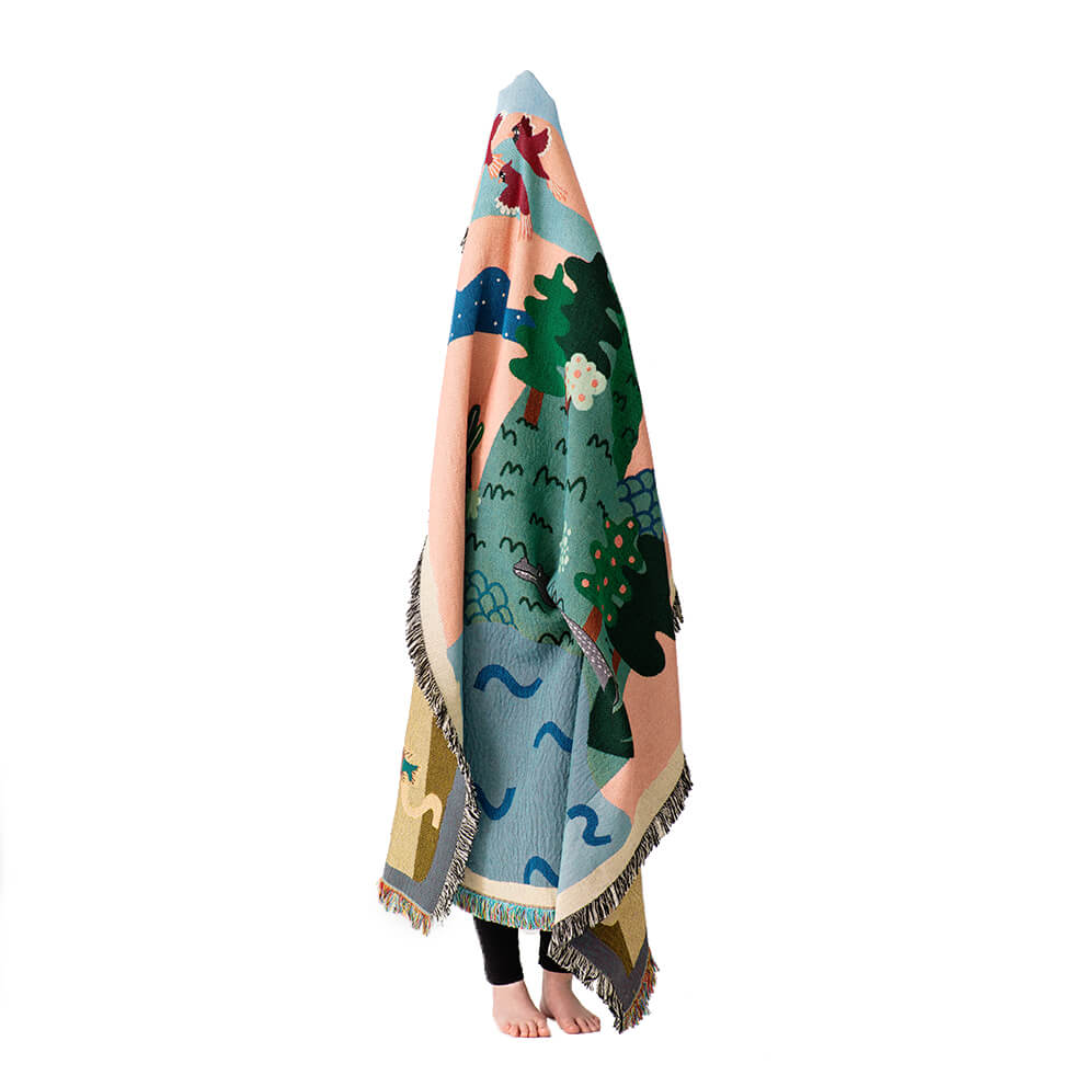 Your unique way to celebrate a couch or a bed, or dress your home with a genuine wall tapestry. This blanket is part of the new collection GENESIS - an illustrated interpretation of the genesis 6 days creation story, bringing bits of light and color into the world of textile.