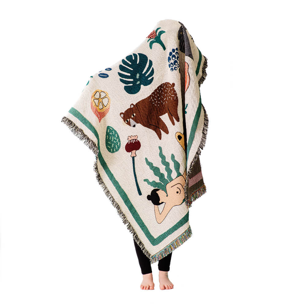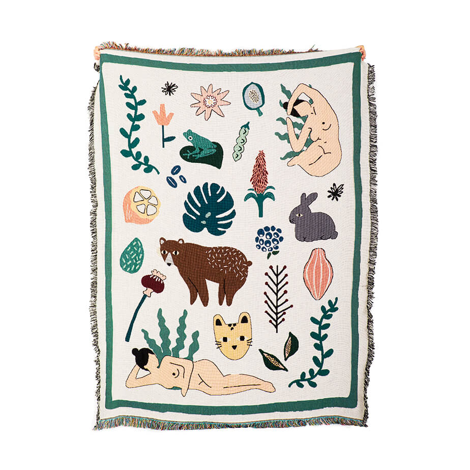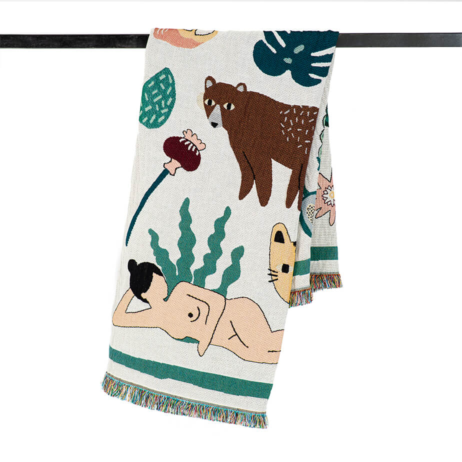 Your unique way to celebrate a couch or a bed, or dress your home with a genuine wall tapestry. This blanket is part of the new collection GENESIS - an illustrated interpretation of the genesis 6 days creation story, bringing bits of light and color into the world of textile.