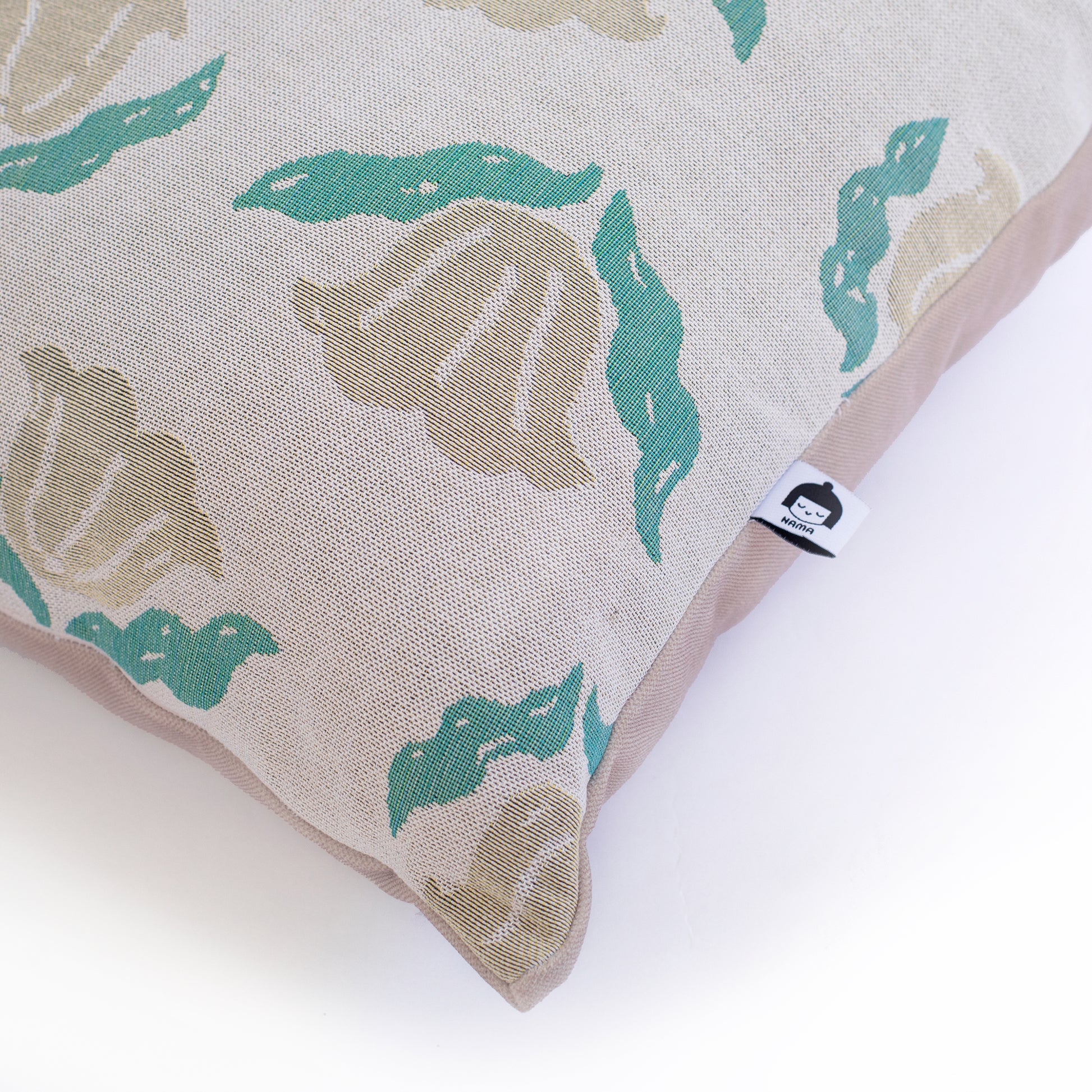 bed or sofa for a cozy and stylish look. Each cushion is woven with recycled cotton in the US with our original design, and sewn by hand in our studio. The back side is plain soft suede fabric. Removable cover with a zipper enclosure on the bottom.