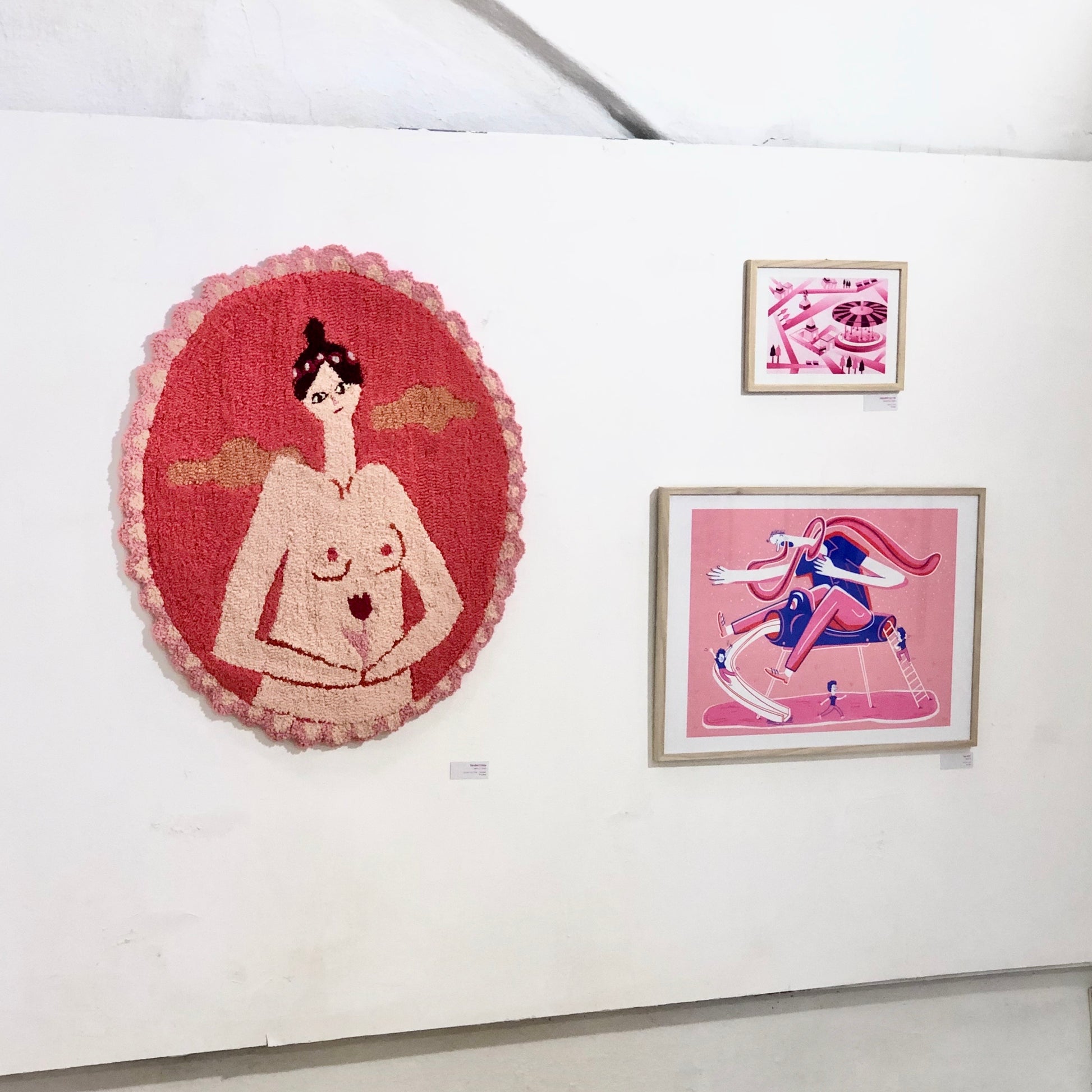 This cheerful handmade tufted rug was made especially for ‘The Pink Period’ group exhibition. It is made from cotton threads, perfect for decorating any empty wall in your home, and brings inside a pop of color and uniqueness.