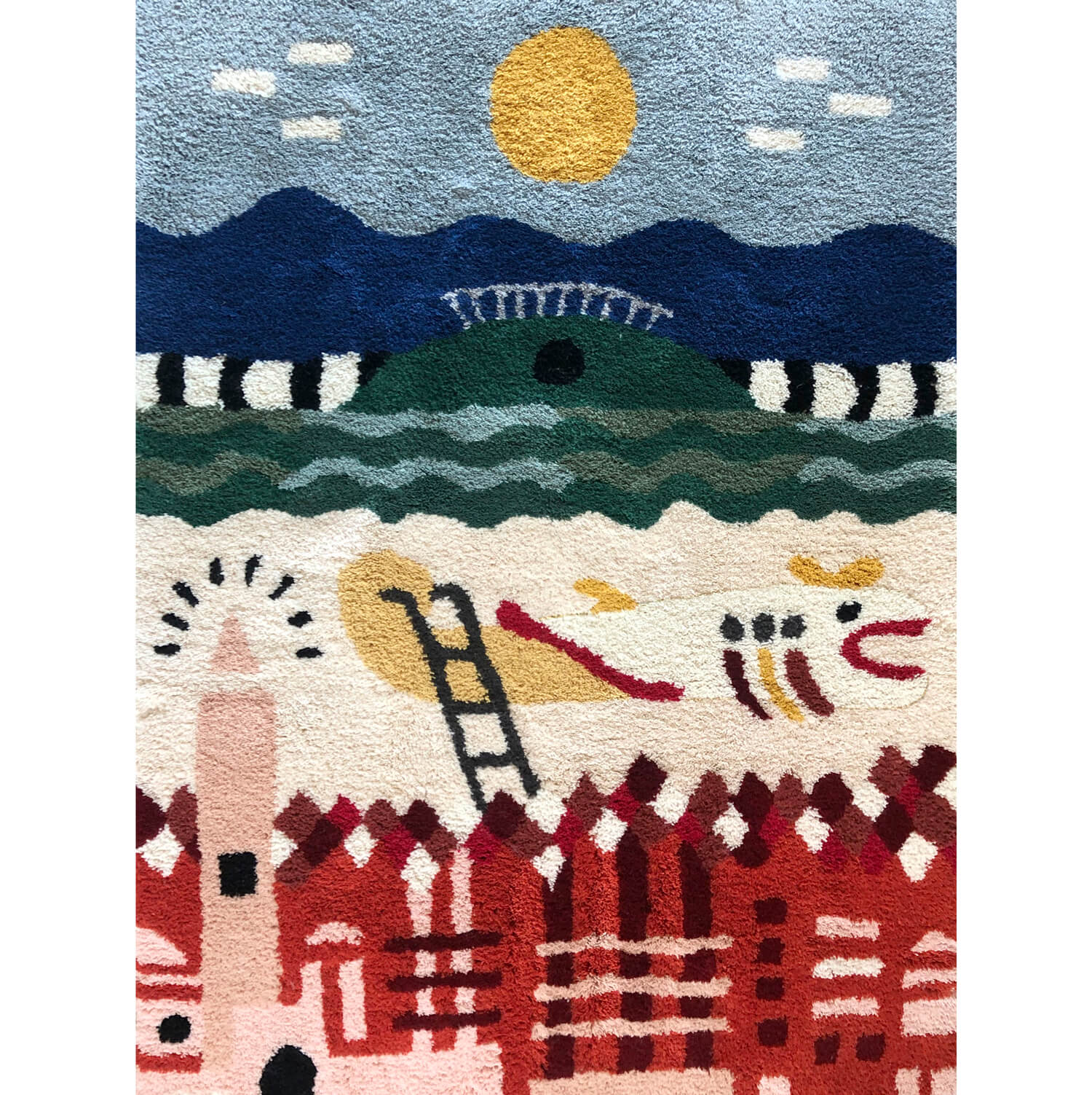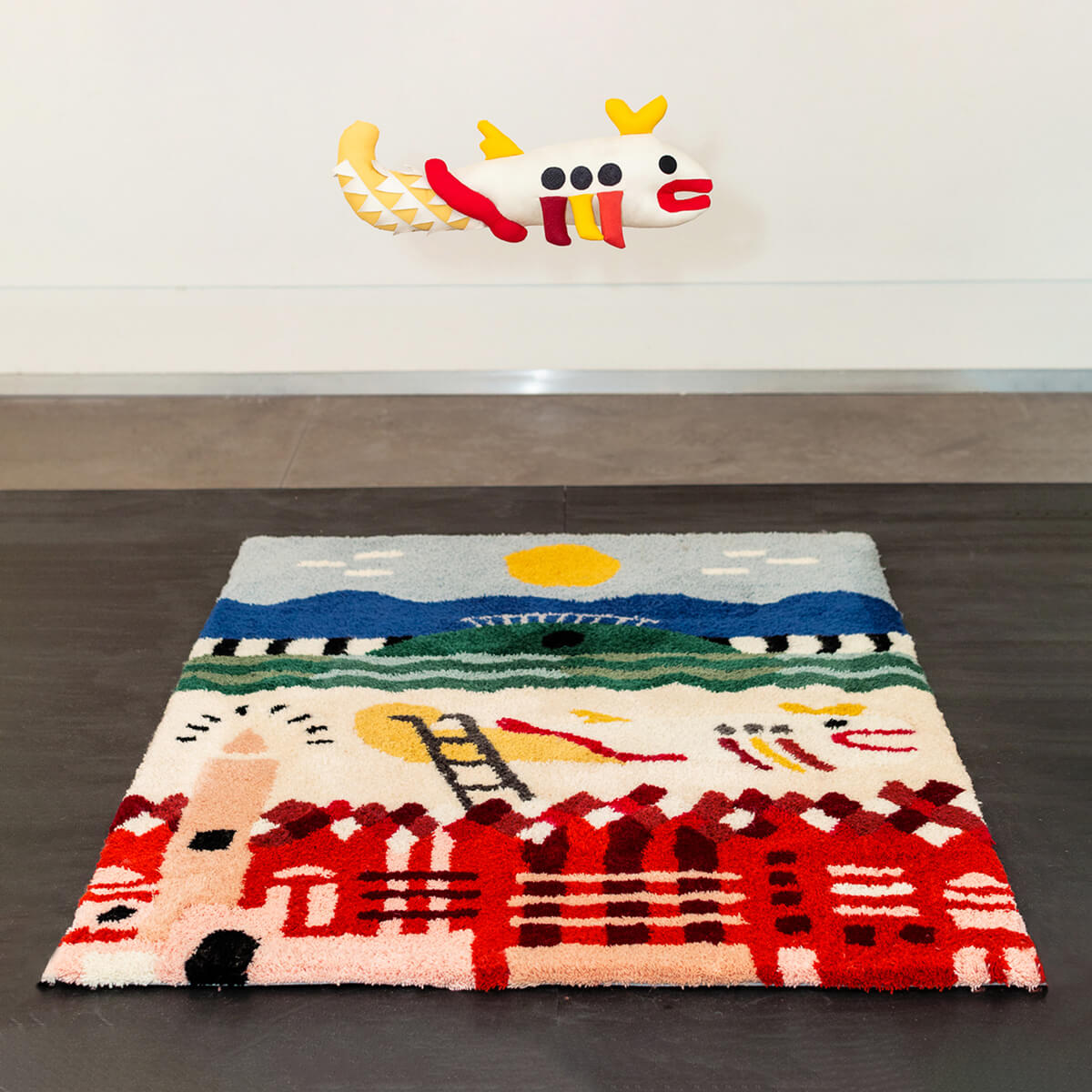 The rug represents Charles Clore Park in Tel Aviv and it's historical transformation and inspired by the Bauhaus movement and its principles.