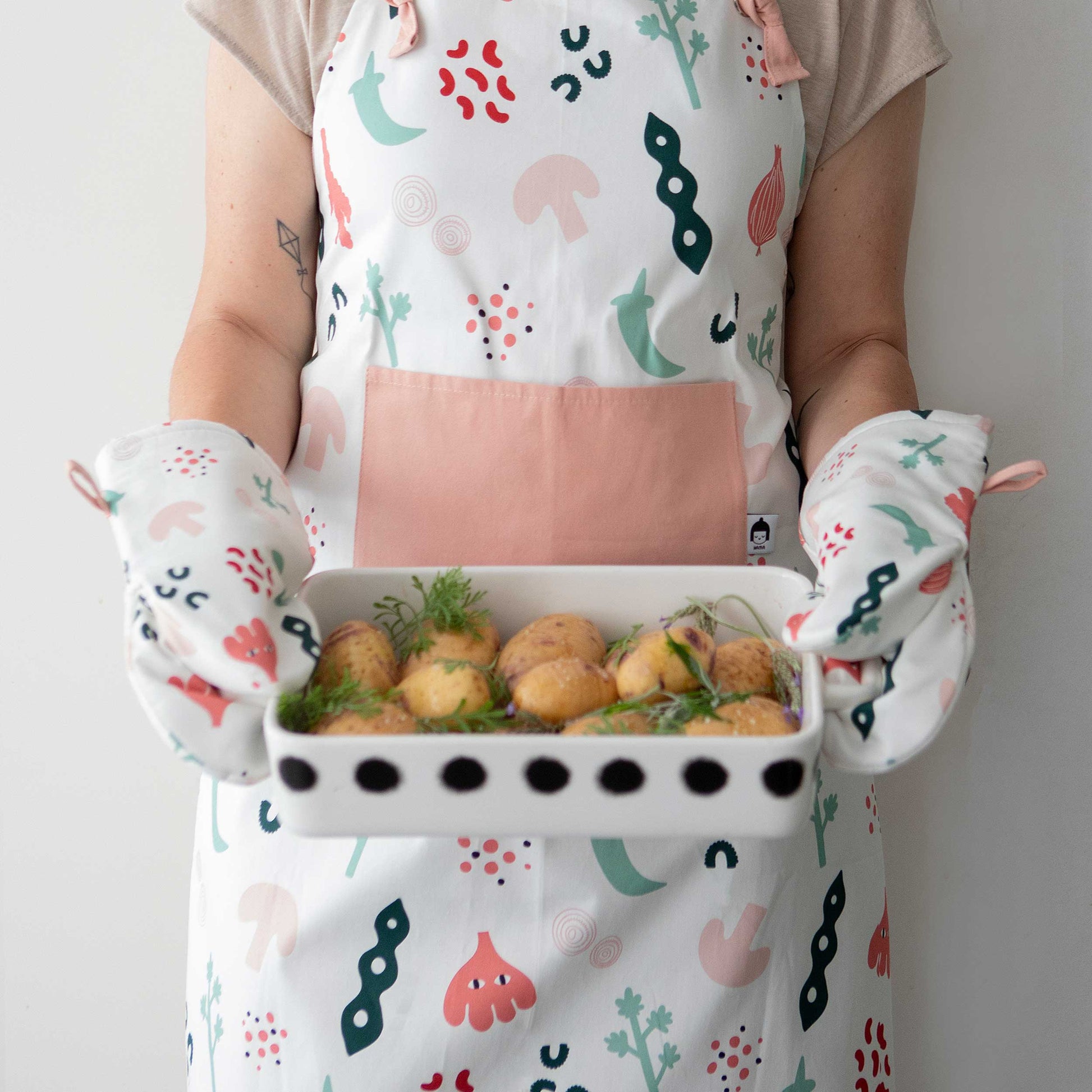 These pair of gloves are made of 100% superior long-lasting Cotton for Extra Durability and Softness. Essential for any decorated kitchen, and for cooking with style. for Domestic and Commercial Use. Machine Washable.