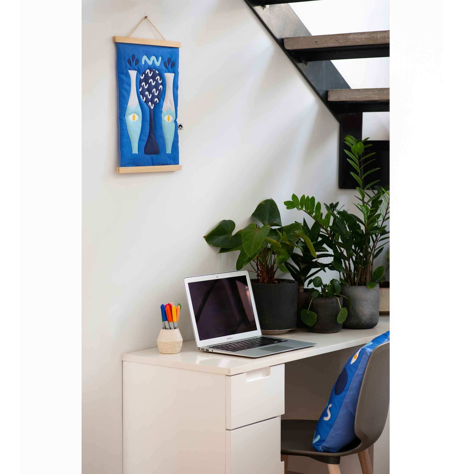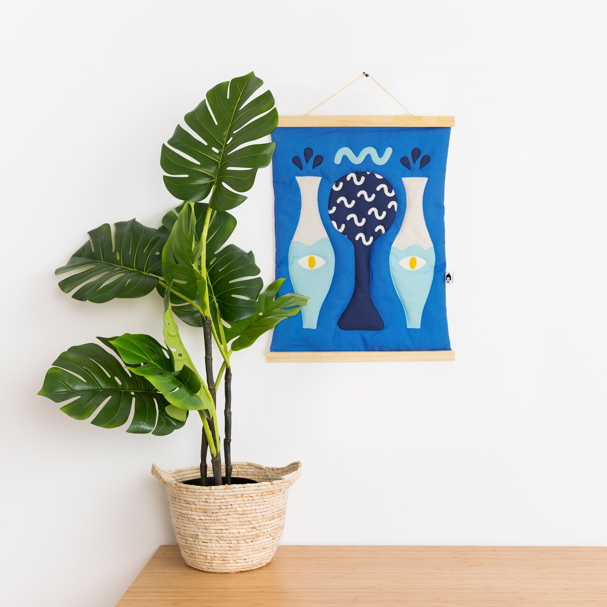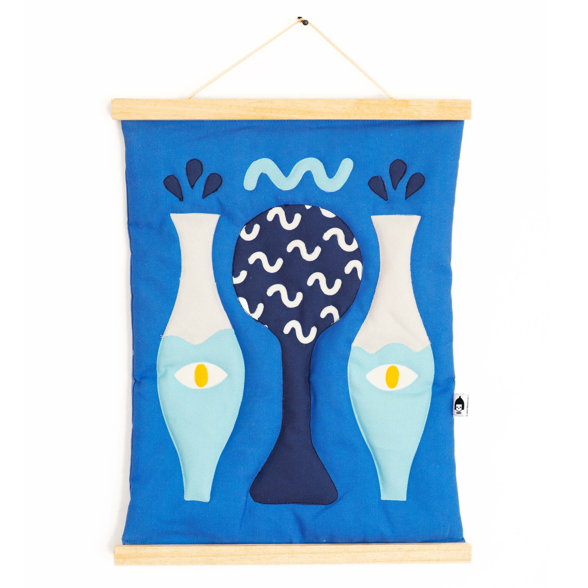 Each wall hanging is printed and quilted by hand in our studio and comes with a wooden frame.