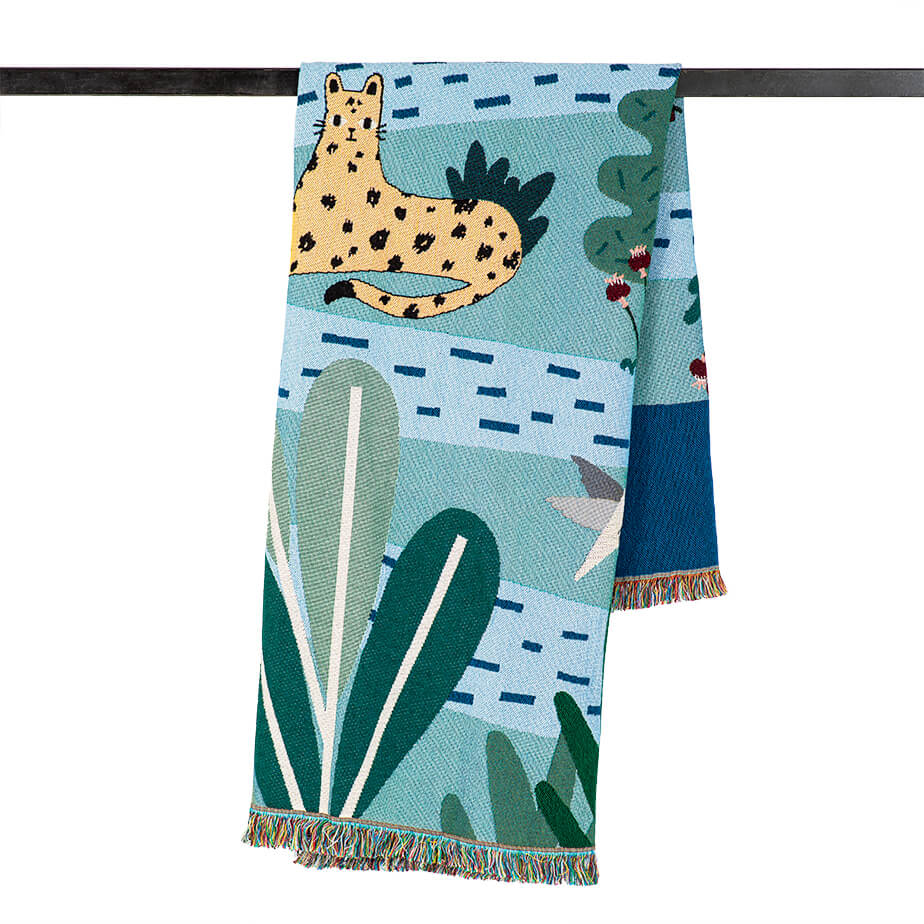 Your unique way to celebrate a couch or a bed, or dress your home with a genuine wall tapestry. This blanket is part of the new collection GENESIS - an illustrated interpretation of the genesis 6 days creation story, bringing bits of light and color into the world of textile. This blanket represents the second day - 'Let it divide the waters from waters'.